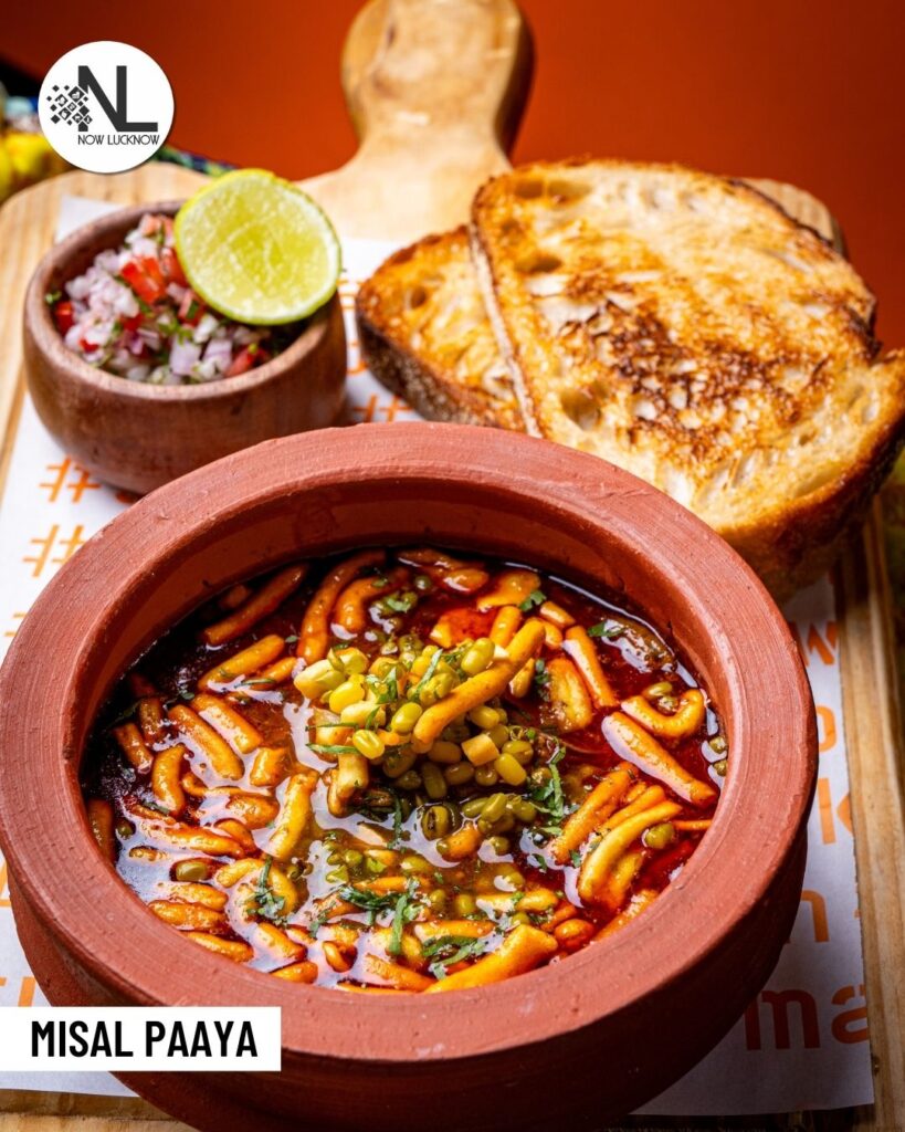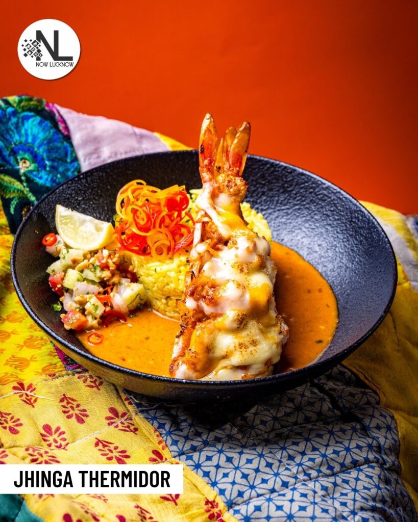 The menu leans fully into indulgence with Misal Paaya—spicy sprouts in rich mutton trotter broth — and the decadent Jhinga Thermidor, featuring tiger prawns tossed in Malwani masala, layered with cheddar, and served with turmeric rice and peanut kachumber.