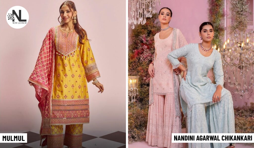 Mulmul brings timeless elegance to festive wardrobes, while Bagh’s Riwaayat collection reimagines heritage in contemporary silhouettes. The delicate detailing of Nandini Agarwal Chikankari and modern cuts from Vishal Mehra Design Studio make every outfit feel special, with Musara adding its own festive charm.